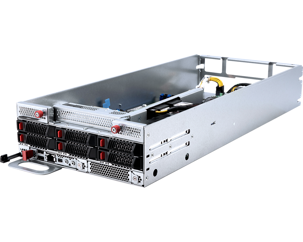 • (6) Front hot-swap 2.5" U.2 PCIe 5.0 x4 NVMe drive bays per node