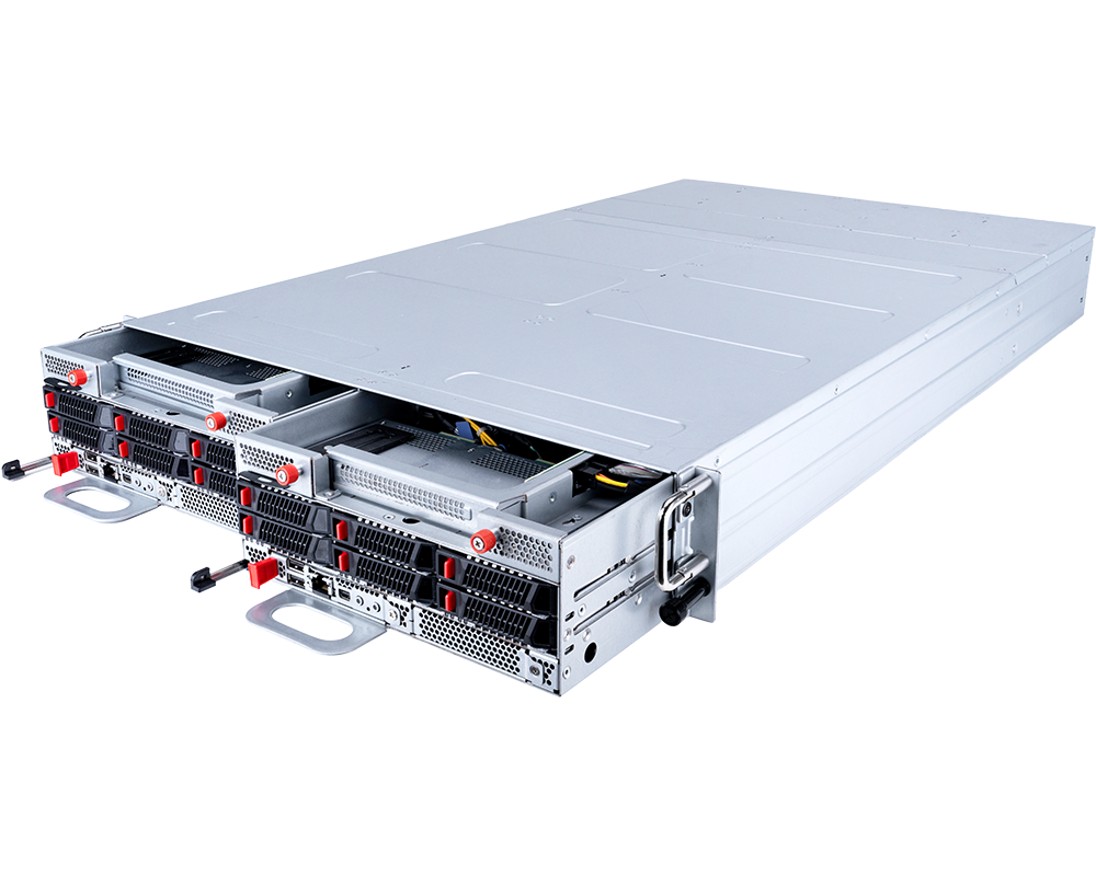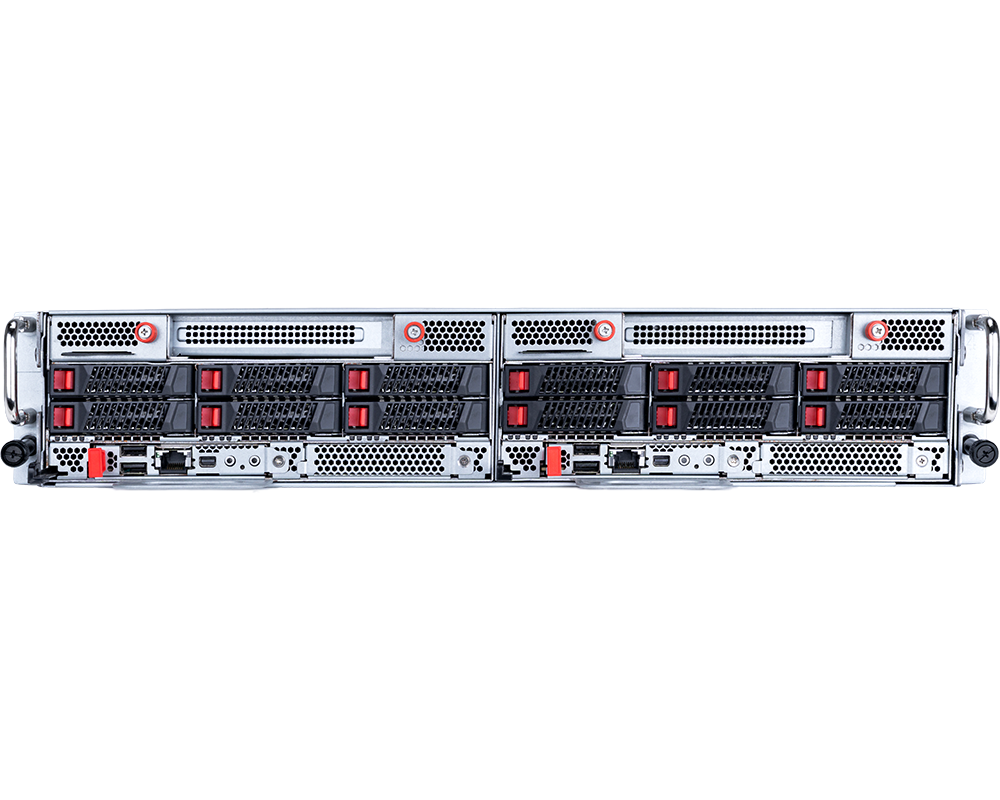 • (6) Front hot-swap 2.5" U.2 PCIe 5.0 x4 NVMe drive bays per node