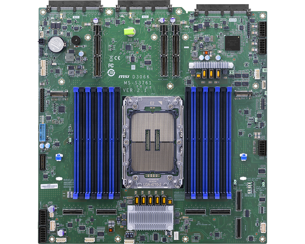 • (16) DDR5 RDIMM, 8 channels(2DPC), up to 6400MT/s(1DPC) and 5200MT/s(2DPC)